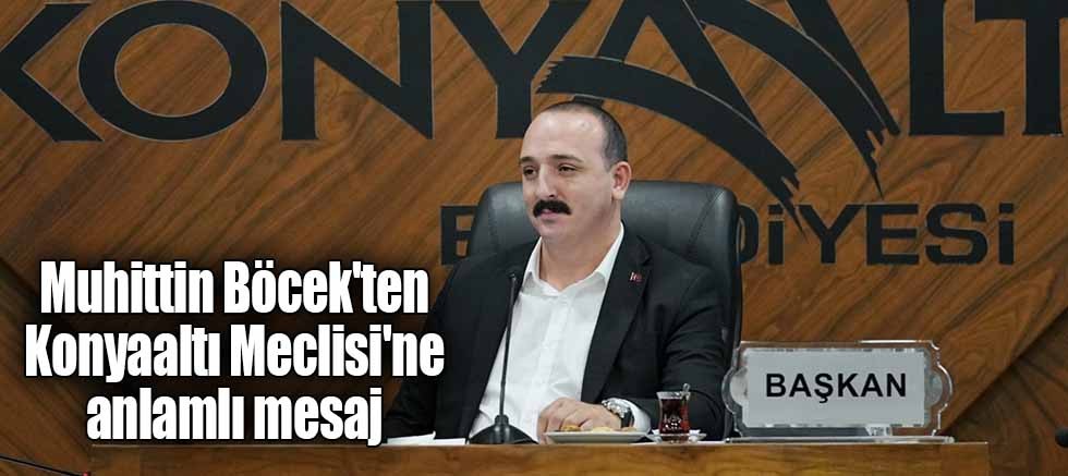 Konyaaltı Belediye Meclisi Eylül Ayı Olağan Toplantısı, Belediye Başkanı Cem Kotan başkanlığında gerçekleşti. Mecliste, tutuklu bulunan ve Antalya Büyükşehir Belediye Başkanı iken İçişleri Bakanlığı tarafından görevden uzaklaştırılan Muhittin Böcek’in gönderdiği mesaj okundu.