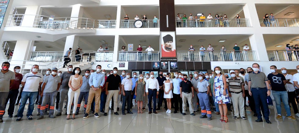 Muratpaşa Belediyesi, yarın başlayacak Kurban Bayramı öncesinde, fuayede düzenlenen törenle bayramlaştı. Bayramlaşmada, korona virüs önlemleri çerçevesinde çalışanlar, hem maskelerini taktı hem de bulundukları katlardan törene katıldı.