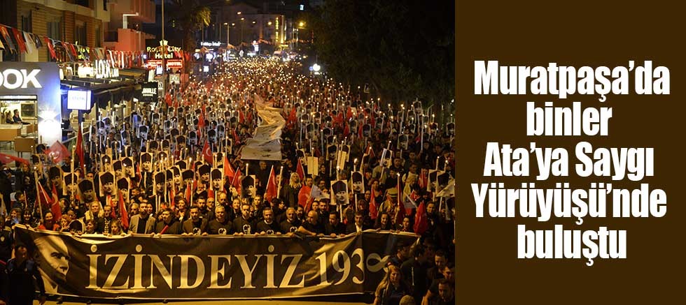 Muratpaşa Belediyesi, “Ata’ya Saygı Yürüyüşü” ile vefatının 87’nci yılında Türkiye Cumhuriyeti’nin kurucusu Gazi Mustafa Kemal Atatürk’ü andı. Muratpaşa Kent Meydanı’ndan başlayan yürüyüş için kent sakinleri saatler öncesinde meydanı doldurdu. Fener alayına katılanlar ellerinde meşalelerle Antalya sokaklarını aydınlattı. Antalya’nın dört bir yanından 7’den 70’e yoğun katılımın yaşandığı yaklaşık 4 kilometrelik yürüyüş Prof. Dr. Erdal İnönü Kent Parkı’na kadar devam etti.