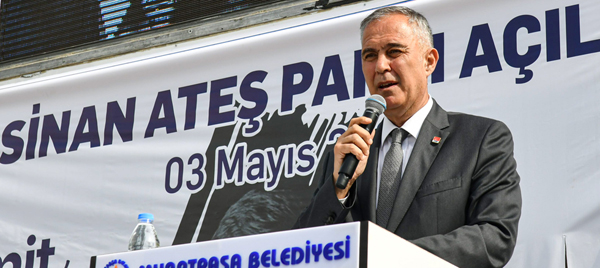 “Doç. Dr. Sinan Ateş daha millete çok hizmet edecekti. O insanın, başkentimizin göbeğinde katledilmesi sıradan bir cinayet olarak görülemez. O nedenle Muratpaşa’mız onu yaşatmak istedi. Muratpaşa’mızda bir tarafta Süleyman Demirel Parkımız bir tarafta Prof. Dr. Erdal İnönü Parkımız var. Bir tarafta Cengiz Aytmov bir tarafta Nazım Hikmet Ran parklarımız vardır. Bir tarafta Ziya Gökalp Parkı var. Bir tarafta Deniz Gezmiş, Hüseyin İnan ve Yusuf Aslan’la simgeleşen Üç Fidan Parkımız var. Milletimizin bütün evlatlarına bir bütün gözüyle bakarız. Fikirleri farklı olabilir. Gelip geçtikleri bu kısa hayatta duruşları farklı olabilir. Ama önemli olan vatanına, milletine, ülkesine, insanlığa hizmet etti mi etmedi. Buna bakarız. Bugün, cari siyasi güçlerden cesaret aldığı anlaşılan faillerin katletme cüretini gösterdikleri bir vatan evladını, Muratpaşa’mızdaki diğer vatan evlatlarımızla, üzerinde çocukların oynayacağı bir parkta yaşatabiliyor olmanın gururu içindeyiz. Bengisu ve Banuçiçek’in babalarını geri getiremeyiz ama burada anısını yaşayacak.”