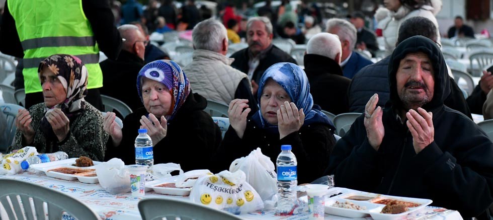 İftar için saatler öncesinden mahalle sakinleri için masalar kuruldu, örtüler serildi, sandalyeler tek tek yerleştirildi. Belediyenin aş evinde pişen yemeklerin de getirilmesiyle tüm hazırlıklar tamamlandı. Ezanın okunmasıyla birlikte Muratpaşa’nın iftar sofrasında oruçlar dualarla açıldı.