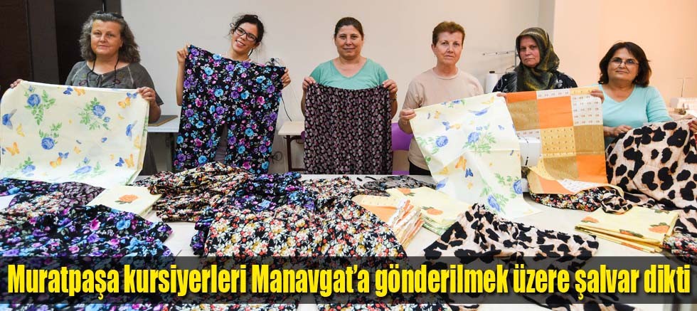 Antalya’da Muratpaşa Belediyesi’nin meslek edindirme, sanat ve hobi kurslarına devam eden kadınlar, 1352 binanın ağır hasar aldığı ve 11’inci günde kontrol altına alınan Manavgat yanından etkilenenler için basmadan şalvar dikti, yastık kılıfı ve çarşafıyla nevresim takımları hazırlardı.