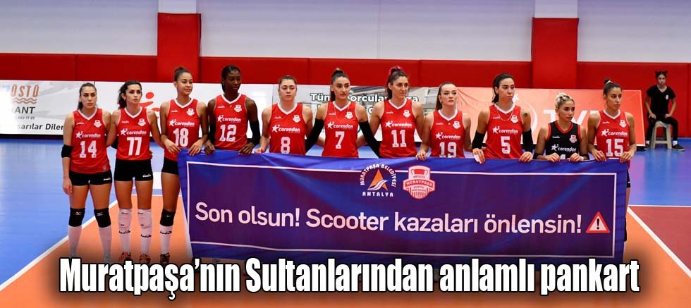 Muratpaşa Belediyespor kadın voleybol takımı, 3-1’lik setlerle galip ayrıldığı AVR Atletik Cİ Group Bornova karşılaşmasına “Son olsun. Scooter kazaları önlensin” yazılı pankartla çıktı.