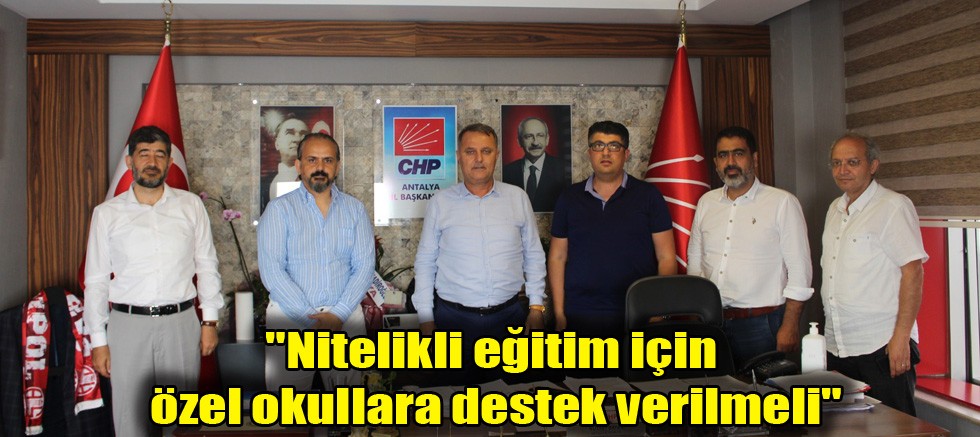 Cumhuriyet Halk Partisi Antalya İl Başkanı Nusret Bayar, CHP Antalya İl Başkanlığı binasındaki makamında Antalya Özel Okullar Platformu sözcüsü Ferhat Yıldız ve platform üyelerini ağırladı. Platformla gerçekleştirdiği görüşmenin ardından açıklamalarda bulunan Başkan Bayar, “Ülkemizin kurtuluşunun temeli eğitimdir. Çağdaş, laik ve nitelikli bir eğitim için hepimiz elimizden geleni yapmalıyız. Ülkemizde 11 bini aşkın özel okulda görev yapan 400 binden fazla personel bulunmaktadır. Eğitim kurumu olmanın yanında ciddi bir istihdam kaynağı da olan özel okullarımıza sahip çıkmak, ayakta kalmaları için onlara destek olmak zorundayız. Özel okullardaki eğitimin daha nitelikli olması ve çocuklarını özel okullarda okutmak isteyen ailelere destek olunması açısından, özel okullara daha önceki süreçte verilen destekler tekrarlanmalıdır” ifadelerine yer verdi.