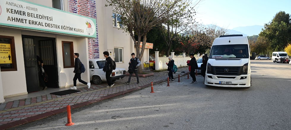 Daha önce evlerinden alınıp okula, okuldan da evlerine güvenli şekilde taşınan lise öğrencileri, Kemer Belediye Meclisinde alınan karar sonrası okuldan Ahmet Erkal Destek Eğitim Kursu’na, kurs sonrası da evlerine ücretsiz şekilde taşınmaya başlandı.