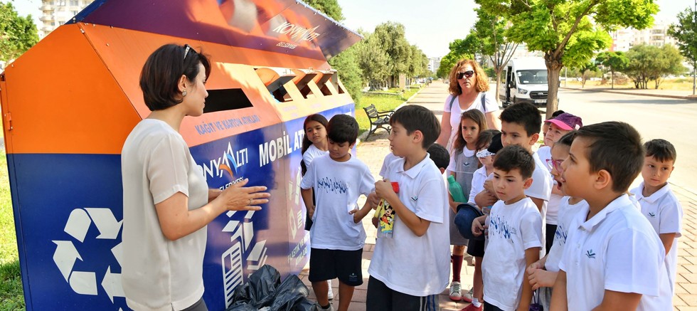 Konyaaltı Belediyesi, ilkokul öğrencilerine geri dönüştürülebilir atıklar ile ilgili uygulamalı eğitim vererek, çocukların hem atık konusunda duyarlı olmalarına hem de çevre bilinci oluşmasına katkı sağlıyor.