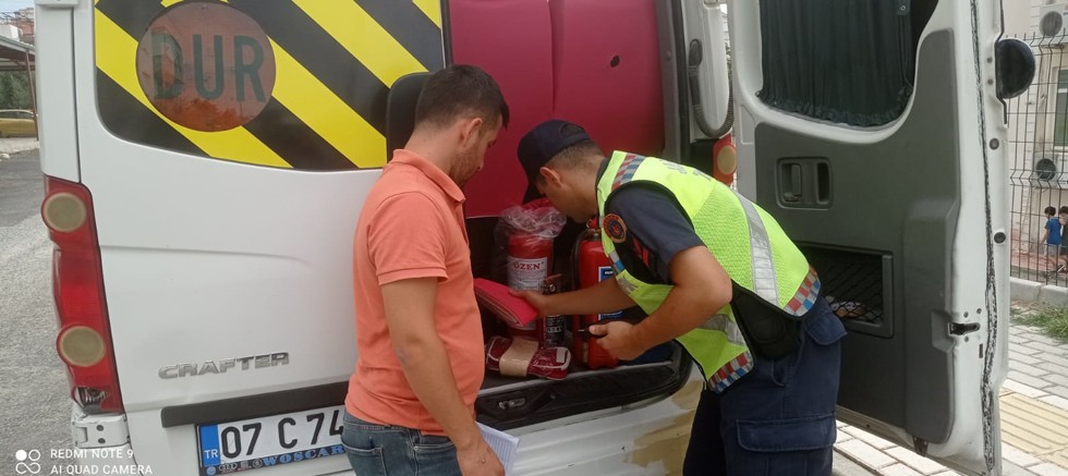 Çocukların trafikte güvenli bir şekilde yolculuk yapabilmesi için okul servis araçlarında alınan tedbirler kontrol edilerek servislerde bulunması mecburi Okul taşıt yazısı, ışıklı dur levhası, emniyet kemeri, ilkyardım çantası, yangın tüpü olması gibi hususların yanında araç şoförlerinin uygunluğu konuları timlerce tek tek denetlenmiştir.