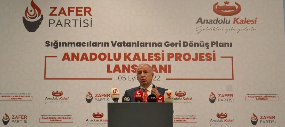 Türkiye, Türkiye Olarak Kalsın Mı Yoksa Göçmenistan Mı Olsun? ‘’Haziran 2023 seçimleri bir referandum olacaktır. Bu referandumun sorusu ‘Türkiye, Türkiye olarak kalsın mı yoksa göçmenistan mı olsun?’ şeklindedir. Türkiye, Türkiye kalsın diyenler “Zafer Partisi” kalmasın diyenler “Düzen partileri”ni seçecektir. Sığınmacı adı altında ülkemizi adım adım işgal eden 13 milyon sığınmacı ve kaçağın geri yollanmasını isteyen seçmen Zafer Partisine oy verecektir. “Sığınmacılar/kaçaklar kalsın” diyenler hangisine verirler ise versinler fark etmez. ’’dedi. Zafer Partisi Genel Başkanı Ümit Özdağ’ın Basın açıklamasının ardından, Zafer Partisi Genel Başkan Yrd. Albay Fikret Bayır, ekte de yer alan ‘Anadolu Kalesi’ Projesinin tanıtımını yaptı.