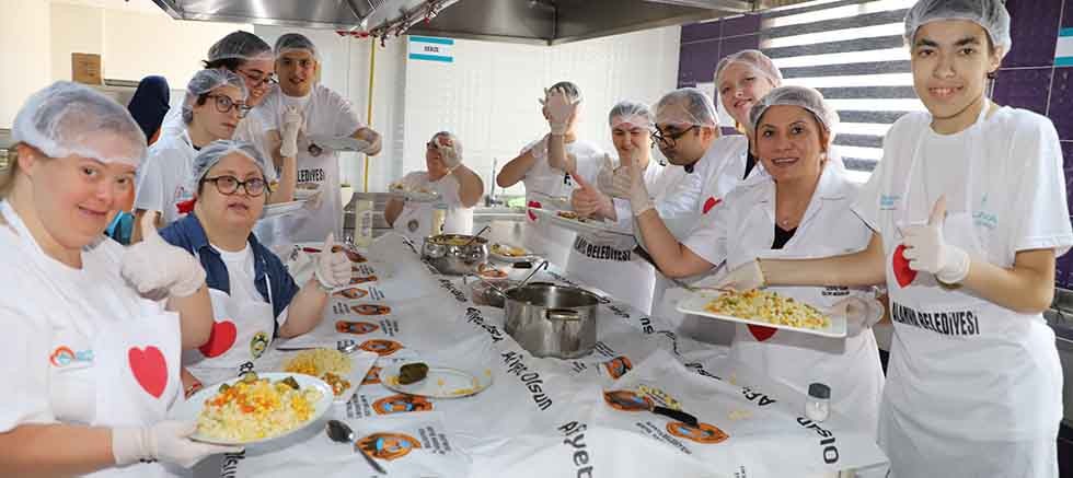 Alanya Belediyesi Engelli Koordinasyon Merkezi üyesi özel bireyler, Engelsiz Mutfak Atölyesi çalışması kapsamında Oba Kız Öğrenci Yurdu mutfağında öğle yemeği menüsü hazırladı.