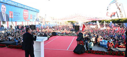 CHP Genel Başkanı Özgür Özel, konuşması sırasında Antalya Büyükşehir Belediye Başkanı ve Adayı Muhittin Böcek’in elini kaldırarak, Muhittin Böcek’in son beş yıllık Büyükşehir icraatında birçok projeyi başarılı bir şekilde hayata geçirdiğini vurgulayarak, “Halk et, dört ilçede satış mağazası açtı. Bütün ilçelere açılacak. Zaten mobil satış mağazası ile de ilçelere uygun ve kaliteli eti ulaştırılıyor. Halk süt ile 2- 5 yaş arası çocuklarımıza 5 yıl boyunca 2.6 milyon litre süt dağıttı. Ve bunu artırarak devam edecek. Antalyalıların vatandaşlarımızın, kaliteli su içmesi için Antsu fabrikasını açtı. Artan maliyetlere rağmen Antalyalının ucuz su içmesini sağlayıp daha da ucuzlatacak. Halk mama projesinin hayata geçirecek ve bu projesiyle 6-24 aylık çocuklara mama verecek. Her ilçeye bir kreş sözünü tuttu. 15 ilçemize kreş açıldı. Şimdi ilavelerle Muhittin Böcek, 5 yıl sonra karşımıza geldiğinde toplam 50 kreş açmış olacak. Böylece annelerin iş gücüne katılımını, annelerin sosyal hayata katılımını sağlayacağız. Sokak hayvanları konusunda Muhittin Böcek’in yaptıklarını örnek gösteriyorlar bizlere bu konuda kendisini takdir ediyoruz. Üniversite öğrencilerine her ay suyun 5 tonunu ücretsiz vermesini halkçı belediye olarak önemsiyoruz. CHP olarak Muhittin Böceği 5 yıl yöneten ve 5 yıl yönetmek isteyen partimizin güvenini kazanmış, Yörük delikanlısını, çalışkan delikanlıyı, yoksulluktan bugünlere emek emek gelmiş bu delikanlıyı Antalyalılara emanet ediyorum” dedi.