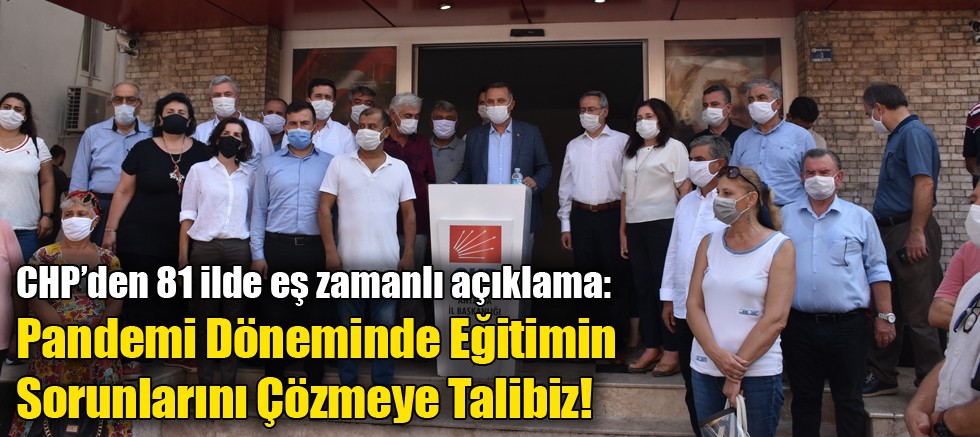 Cumhuriyet Halk Partisi Antalya İl Başkanı Nusret Bayar, İl Başkanlığı binası önünde, pandemi sürecinde eğitimde yaşanan sorunları ele alan ve bu sorunların çözümüyle alakalı Cumhuriyet Halk Partisi’nin önerilerini barındıran açıklamayı basınla ve kamuoyuyla paylaştı. 81 İlde eş zamanlı gerçekleştirilen basın açıklamasında şu ifadeler yer aldı;