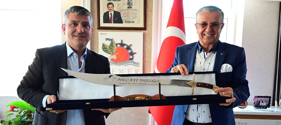 Ziyaret sonrası Oda Başkanı Bucak, Kemer Belediye Başkanı Necati Topaloğlu'na Antalya Semt Pazarcılar Odası adına kılıç hediye etti. Belediye Başkanı Necati Topaloğlu ise Kemer kolonyası takdim ederek Başkan Bucak’a teşekkür etti.