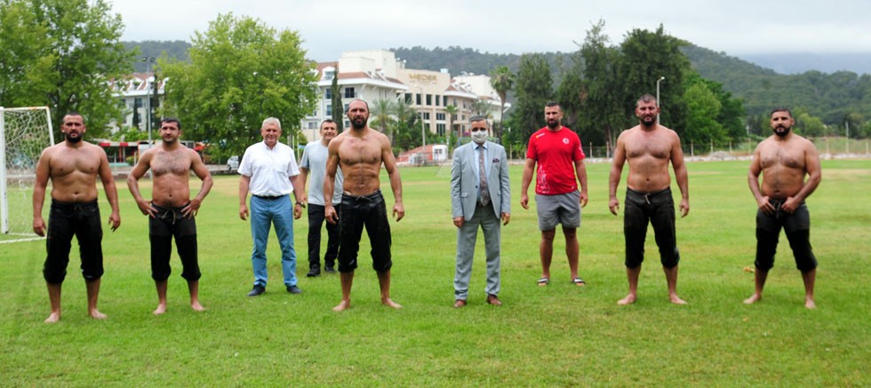 Tarihi Kırkpınar Yağlı Güreşleri’ne hazırlanan son şampiyon Ali Gürbüz ve diğer pehlivanlar, antrenmanlarını Kemer’de sürdürüyor.