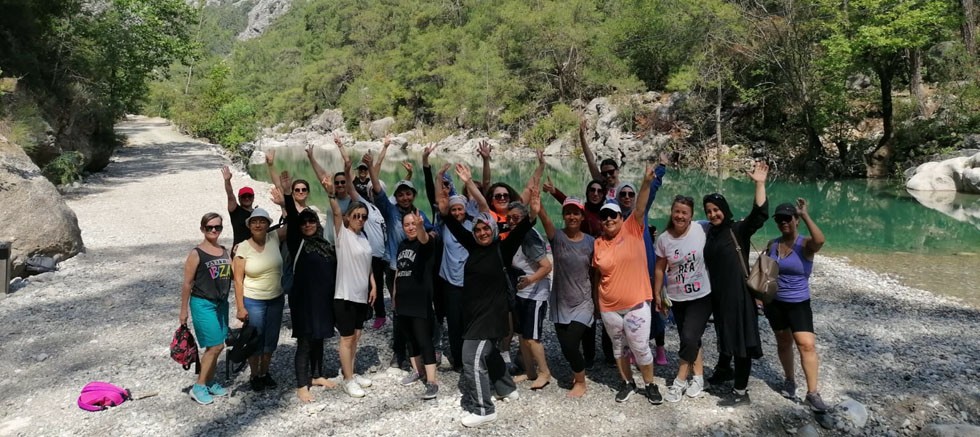 Kemer Belediyesi tarafından ücretsiz pilates kursu alan toplam 130 kursiyerden 25’i Göynük Kanyonu’nda antrenman yaptı.