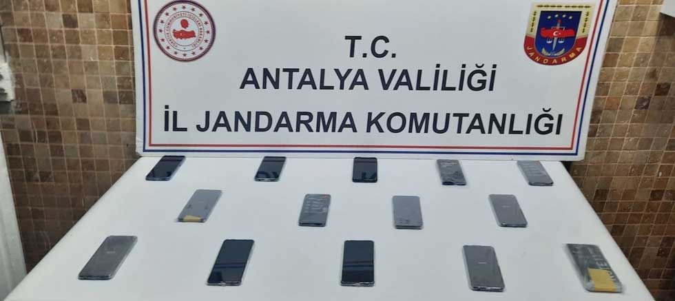 "Antalya Cumhuriyet Başsavcılığı koordinesinde; Antalya İl J. K.lığı KOM Şube Müdürlüğünce Suriye uyruklu M.C. isimli şahsın Antalya İli, Kepez ilçesine kaçak cep telefonu getirerek piyasaya sürdüğü bilgisinin alınması üzerine KOM Şube Müdürlüğü ve Kepez İlçe Jandarma K.lığı ekipleri tarafından düzenlenen operasyonda şüpheli şahıs Göksu Mahallesi'nde yakalanmıştır. Şüpheli şahsın elinde bulunan çanta içerisinde yapılan aramada; piyasa değeri yaklaşık 150.000 TL olan toplam (14) adet cep telefonu ele geçirilmiştir.