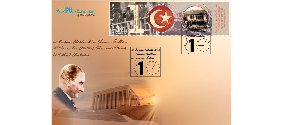 "10 Kasım Atatürk'ü Anma Haftası" konulu özelgün zarfıyla birlikte aynı tarihte "PTT Pul Müzesi, Hacı Bayram Mahallesi, Atatürk Bulvarı, No:13, Ulus /Altındağ/ANKARA" adresinde mesai saatleri içerisinde "10 Kasım Atatürk'ü Anma Haftası 10.11.2020 ANKARA" ibareli özeltarih damgası kullandırılmaya başlandı.