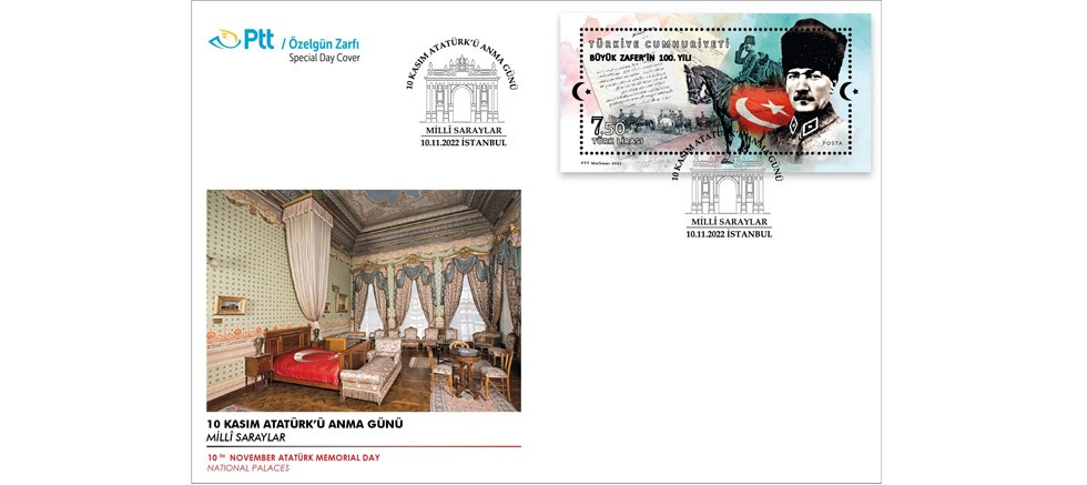 Söz konusu filatelik ürünlerin satışı ile aynı tarihte Beşiktaş PTT Müdürlüğü / İSTANBUL adresinde “10 Kasım Atatürk'ü Anma Günü Milli Saraylar 10.11.2022 İSTANBUL” ibareli özelgün zarfına ait özeltarih damgası kullandırılmaya başlandı.