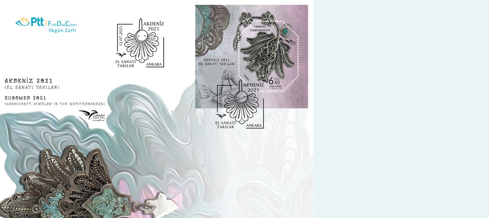 "Akdeniz 2021 (El Sanatı Takılar)" konulu 6,50 TL (66 x 72 mm boyutunda) bedelli anma pulu, söz konusu pula ait 9,00 TL bedelli ilkgün zarfı www.filateli.gov.tr adresinde, filateli cep uygulamasında ve PTT iş yerlerinde abone sayısı kadar satışa çıktı.