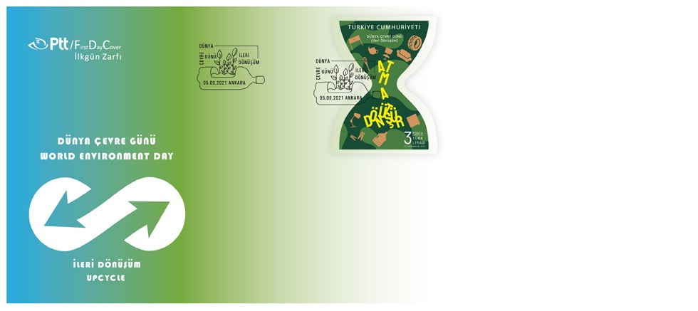 PTT AŞ tarafından “İleri Dönüşüm” temasına yer verilen, stickerlı ve geri dönüşümlü pul kağıdına basılarak hazırlanan “Dünya Çevre Günü” konulu tek değerli anma pulu ve ilkgün zarfı 05 Haziran 2021 tarihinde tedavüle sunuldu.