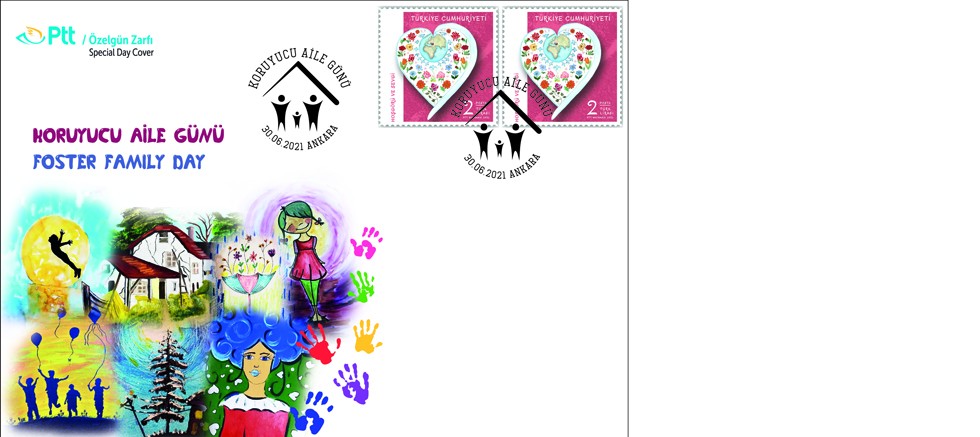 PTT AŞ tarafından hazırlanan "Koruyucu Aile Günü" konulu özelgün zarfı, 30 Haziran 2021 tarihinde tedavüle sunuldu.