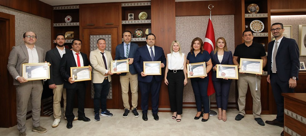 Akdeniz Üniversitesi öğretim üyeleri, TÜRKPATENT ISIF’25’te kazandıkları madalyalarla inovasyondaki gücünü ortaya koydu. Rektör Prof. Dr. Özkan, ödül alan öğretim üyelerini makamında kabul ederek tebrik etti.