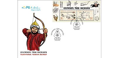 PTT AŞ tarafından “Geleneksel Türk Okçuluğu” konulu blok şeklinde hazırlanan iki değerli anma pulu ile ilkgün zarfı, 06 ..