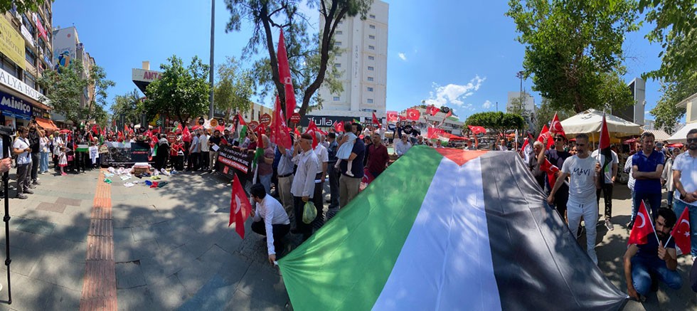 Partililer adına konuşan Saadet Partisi Antalya İl Başkanı Ramazan Düzen, “Bugün Siyonist İsrail’in yaptığı soykırımı lanetlemek, Filistinli kardeşlerimizin yanında olduğumuzu göstermek, Siyonizm’e karşı onurluca direnen kardeşlerimize omuz vermek, direnişi selamlamak ve ikiyüzlü suskunluğa karşı insanlık onurunu haykırmak için buradayız” dedi.