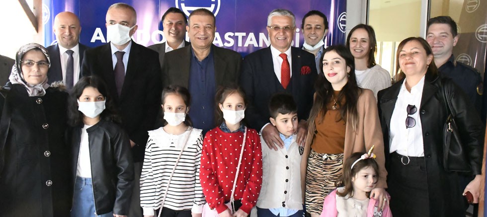 Resim yarışmasında dereceye giren öğrencilere ödüllerini Kaymakam Gemici, Başkan Topaloğlu ve Anadolu Hastaneleri Yönetim Kurulu Başkanı Çaylak verdi.