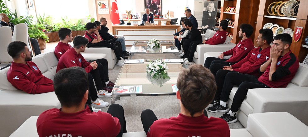 Antalya 1. Amatör Batı Grubunda mücadele eden ve Play-Off grubunda şampiyon olan Kemer 2020 Futbol Kulübü teknik heyeti ve oyuncuları, Kemer Belediye Başkanı Necati Topaloğlu’nu makamında ziyaret etti.