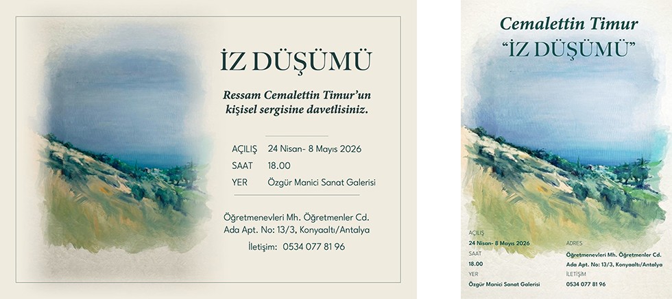 Antalya’nın kültür-sanat sahnesi, 24 Nisan 2026 tarihinde önemli bir sergiye ev sahipliği yapmaya hazırlanıyor. Cemalettin Timur’un peyzaj çalışmalarından oluşan “İzdüşümü” adlı yeni sergisi, Özgür Manici Sanat Galerisi’nde sanatseverlerle buluşuyor.