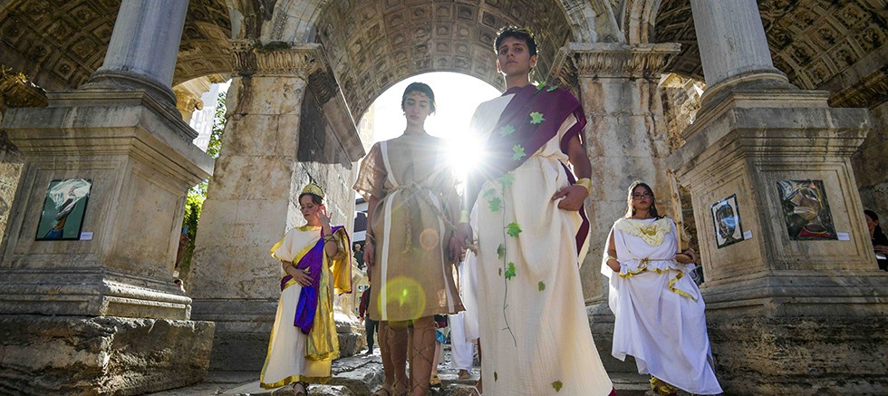 Festivalde, birbirinden renkli sergilerin yanı sıra dans gösterileri de büyük ilgi gördü. Etkinliklere hareket ve tarihî bir renk katan gençler, eski Roma dönemi kıyafetleriyle Üç Kapılar’a inerek antik kenti adeta asırlar öncesine taşıdı. Hadrian Kapısı önünde gerçekleştirilen fotoğraf çekimi, hem katılımcılar hem de ziyaretçiler tarafından büyük beğeni topladı. Gençlerin Roma kostümleriyle yaptığı bu performans, izleyenlere tarihin büyülü atmosferini yeniden yaşattı.