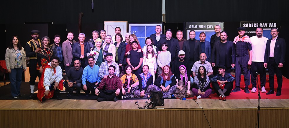 Oyun sonunda, sahneye çıkan protokol üyeleri tiyatro ekibini tebrik ederek anı fotoğrafı çektirdi.