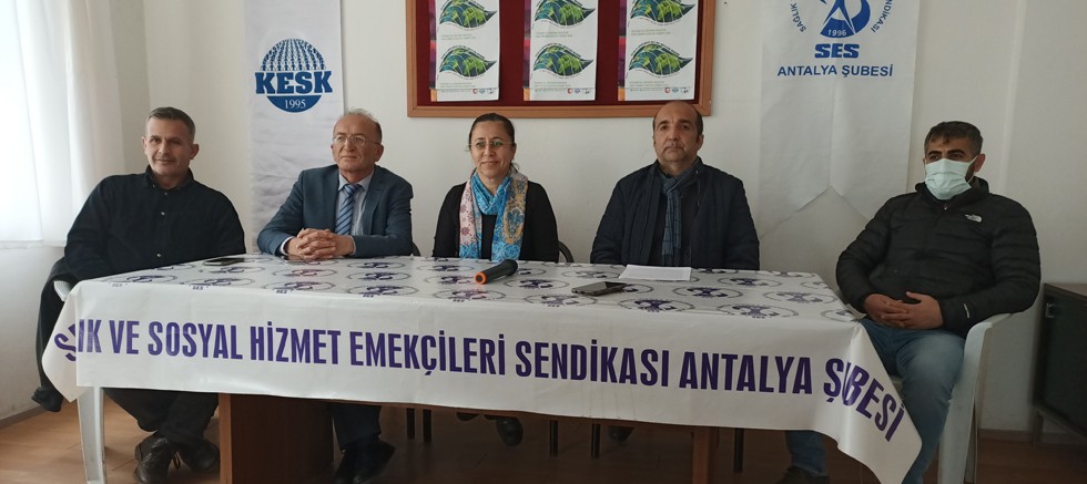 Sağlık ve Sosyal Hizmet Emekçileri Sendikası (SES) Antalya Şube Eş Başkanı Dr Kaan Taşer 16 Mart Dünya Sosyal Hizmet Günü nedeniyle şube binasında basın toplantısı yaptı.