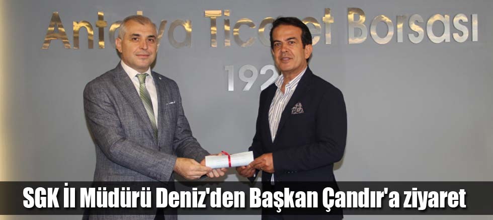 Antalya Sosyal Güvenlik (SGK) İl Müdürü Nejat Deniz, Antalya Ticaret Borsası Yönetim Kurulu Başkanı Ali Çandır’ı ziyaret etti. Ziyarette sosyal güvenlik sistemi üzerine görüş alış verinde bulunulurken, tarıma özel sosyal güvenlik ve sigorta borçlarının yapılandırılması konuları gündeme geldi.