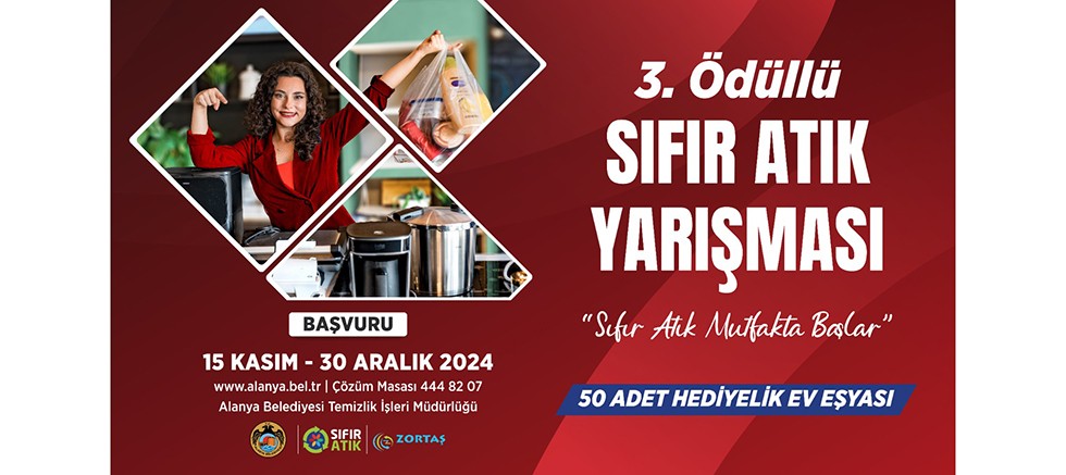 Gerçekleştirdiği sıfır atık çalışmalarıyla Türkiye’de örnek bir belediye haline gelen Alanya Belediyesi, 2 yıldır düzenlenen ve büyük ilgi gören “Sıfır Atık Mutfakta Başlar” yarışmasını bu yıl da düzenliyor. Başvuruların 15 Kasım’da başlayacağı yarışma 30 Aralık’a kadar devam edecek.