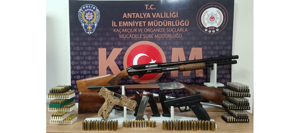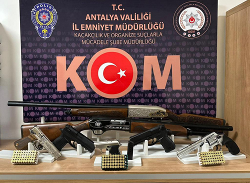 "Antalya Cumhuriyet Başsavcılığı’nın talimatları doğrultusunda, Kaçakçılık ve Organize Suçlarla Mücadele Şube Müdürlüğü görevlilerimizce silah ticareti yapan şahıslara yönelik yapılan operasyonlarda;