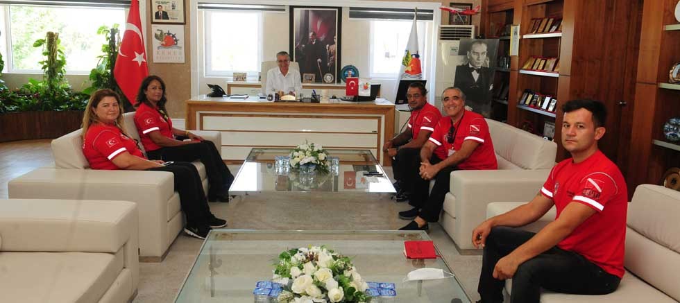 Suda Arama Kurtarma Derneği (SKUT) Başkan Yardımcısı Mustafa Bilyaz, Kemer Belediye Başkanı Necati Topaloğlu’nu ziyaret etti.