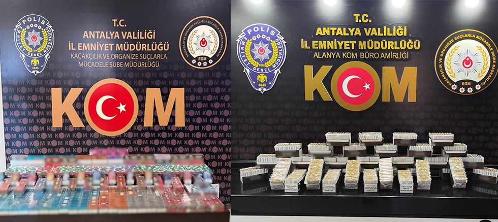 Kepez, Muratpaşa ve Alanya ilçelerinde yapılan operasyonlar neticesinde, iş yeri, depo ve ikametlerde yapılan aramalarda;