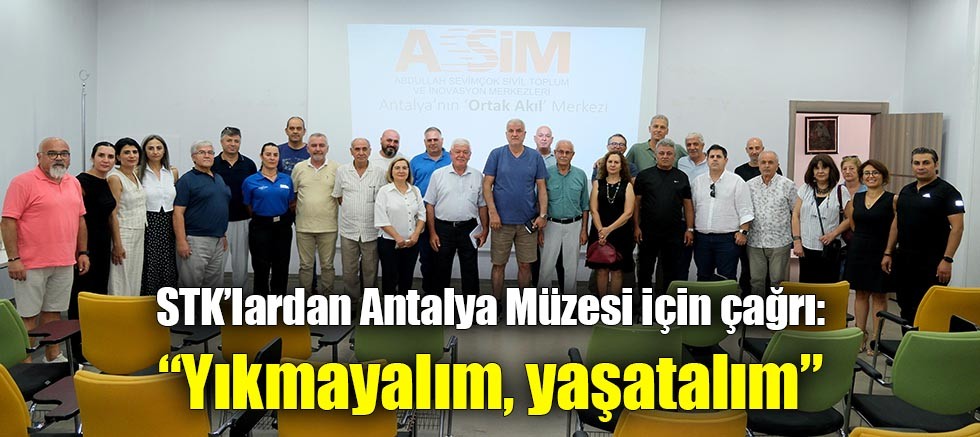 Antalya’da Muratpaşa Belediyesi Abdullah Sevimçok Sivil Toplum ve İnovasyon Merkezleri (ASSİM) yerleşkesinde faaliyet gösteren sivil toplum kuruluşları, Antalya Müzesi’nin yıkım kararıyla ilgili bir araya geldi.