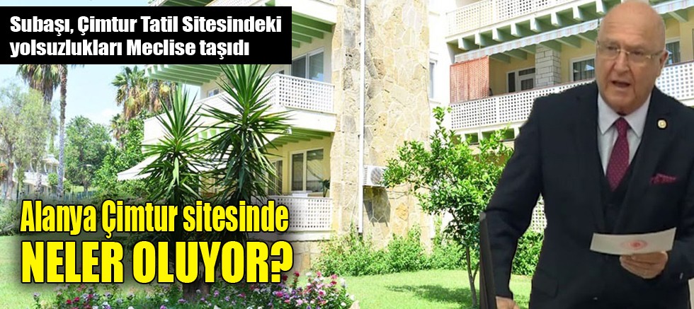 İyi Parti Antalya Milletvekili Hasan Subaşı, binlerce devremülk sahibinin mağdur edildiği, Türkiye’nin ilk devremülk sitesi olan Alanya’daki 60 bin metrekarelik Çimtur Tatil Sitesi’ndeki yolsuzluk ve usulsüzlükleri meclise taşıdı. Subaşı, konu ile ilgili Çevre ve Şehircilik Bakanı Murat Kurum’un cevaplandırması istemiyle, TBMM Başkanlığı’na14 maddeden oluşan bir önerge verdi. Subaşı, “Anayasa’daki mülkiyet hakkı rafa mı kalktı” dedi.