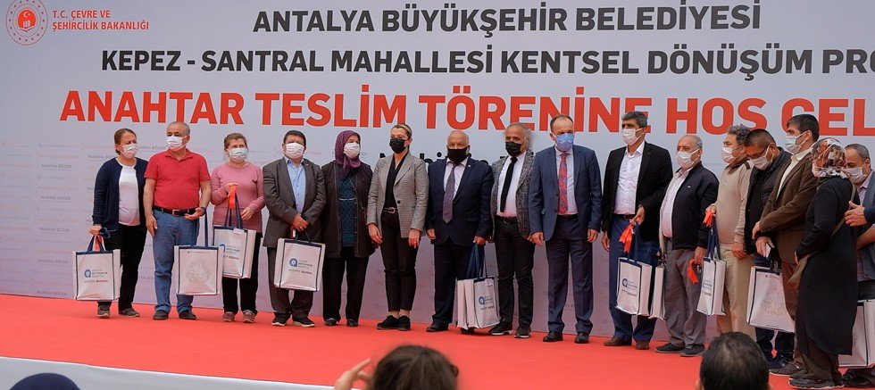 Pandemi nedeniyle sınırlı bir katılımcıyla sade bir şekilde gerçekleştirilen törene online katılım sağlayan Antalya Büyükşehir Belediye Başkanı Muhittin Böcek; “Sur Yapı tarafından inşaat devam ediyor. Biz de vatandaşlarımıza kira desteği vermeyi sürdürüyoruz. Diğer yandan alt yapı ve peyzaj çalışmalarını da tamamladık. Bugün 472 hak sahibinin evlerini teslim ediyoruz. Şimdiye kadar Antalya için taş taş üstüne koyan, emek veren, bu projeyi başlatan, yürüten herkese, Sayın Çevre ve Şehircilik Bakanımıza, önceki dönem Büyükşehir Belediye Başkanlarına çok teşekkür ediyorum. Ayrıca Sur Yapı’nın kıymetli çalışanlarına, Genel Müdürü’ne, yönetimine teşekkür ediyorum. Proje son hızıyla devam edecek ve tüm hak sahibi vatandaşlarımız etap etap evlerine kavuşacaklar” dedi.