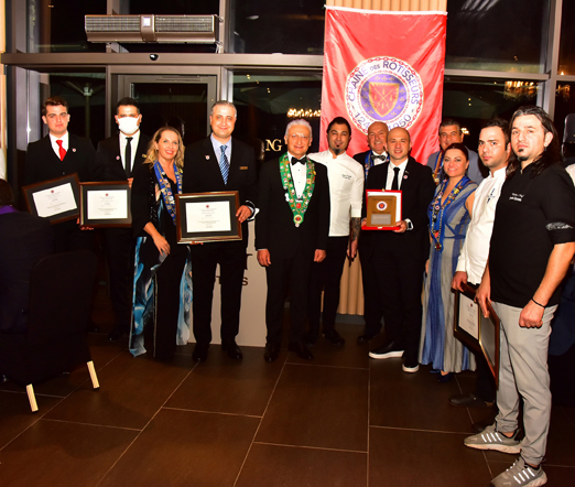 Gecenin sonunda, birbirinden lezzetli yemeklerin yer aldığı menüyü tasarlayan Executive Chef Engin Öztürk ve mutfak ekibinden Koray Öztop, Beytullah Özyılmaz, Eren Alan, Ramazan Yengeç ile Yiyecek ve İçecek Müdür Yardımcıları Halil Gündüz, Selçuk Ünlü ve Restoran Müdürü Okan Çam ile servis ekibine Chaine des Rotisseurs Derneği Antalya Yönetim Kurulu Üyeleri tarafından derneğin plaketleri verildi.