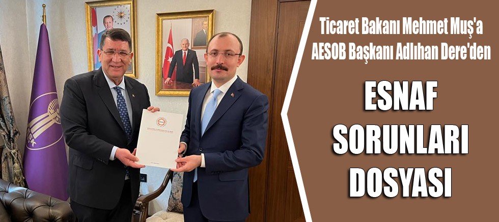 Ticaret Bakanı Mehmet Muş’u ziyaret eden AESOB Başkanı Adlıhan Dere, yaptığı esnaf ziyaretlerinde, toplantılarda, merkez ve ilçelerde gerçekleştirilen oda genel kurullarında; Antalya esnafının, oda başkanlarının, yönetim ve denetim kurulu üyelerinin kendisine aktardığı esnaf sorunlarını dile getirdi.