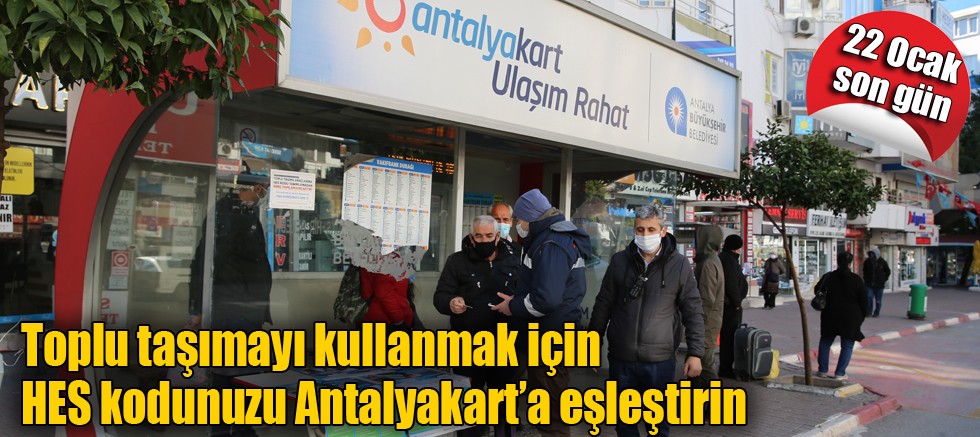 Covid-19 salgını ile mücadele kapsamında karantinada bulunması gereken vatandaşların şehir içi toplu taşıma araçlarını kullanmalarını engellemek amacıyla İçişleri Bakanlığı'nın çıkardığı genelge ve Antalya Valiliği İl Hıfzıssıhha Kurulu kararı gereğince toplu ulaşımda HES Kodu uygulaması başlatılmıştı. Büyükşehir Belediyesi, HES kodu ile Antalyakart’ın eşleştirilmesiyle ilgili süreyi 22 Ocak Cuma gününe kadar uzatmıştı.