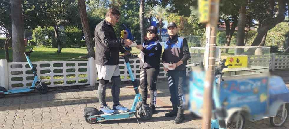 Alanya İlçe Emniyet Müdürlüğü Toplum Destekli Polislik Büro Amirliği görevlilerimizce yürütülen “Trafik Kuralları Hayat Kurtarır” projesi kapsamında; özellikle motosiklet, elektrikli scooter ve elektrikli bisiklet sürücülerine trafik kurallarının önemini anlatmak, trafikteki diğer aksaklıklara dikkat çekmek, meydana gelebilecek kazaların önüne geçmek ve toplumsal bilincin geliştirilmesi amacıyla E Scooter kullanımı ile ilgili 4 dilde (İngilizce, Almanca, Rusca, Türkçe) hazırlanan broşürlerin dağıtımı gerçekleştirilmiştir.