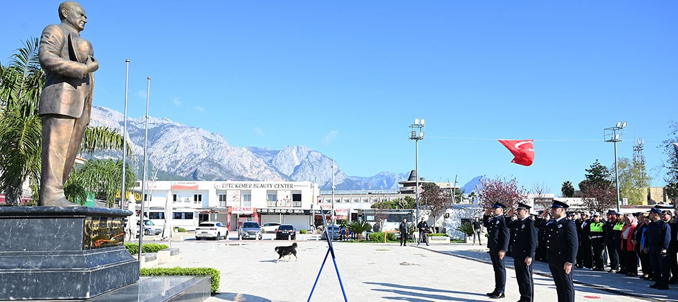 Kemer Emniyet Müdürü Kudret Özçelik’in Atatürk Anıtı’na çelenk sunumuyla başlayan tören, saygı duruşunda bulunulmasının ardından İstiklal Marşı’nın okunmasıyla devam etti.
