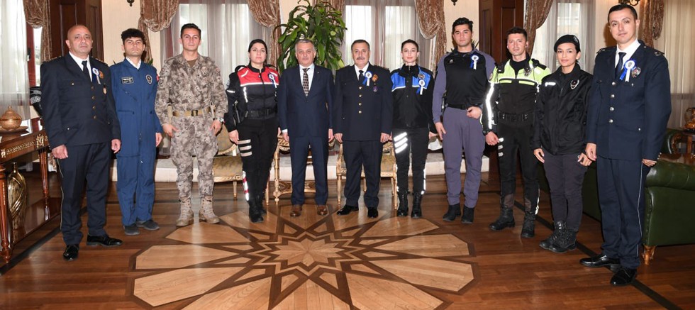 Türk Polis Teşkilatının 178’inci Kuruluş Yıl Dönümü ve Polis Haftası dolayısıyla Vali Ersin Yazıcı İl Emniyet Müdürü Orhan Çevik ve beraberinde Balık Adam, Motosikletli Polis Timi, Trafik Polisi, Toplum Destekli Polis, Hava Polisi (Pilot), Çevik Kuvvet ve Özel Harekât Polisinden oluşan heyeti kabul etti. Misafirleri ile yakından ilgilenen Vali Yazıcı, ziyaretten duyduğu memnuniyeti ifade ederek tüm Polis Teşkilatının 178’inci Kuruluş Yıl Dönümünü kutladı.