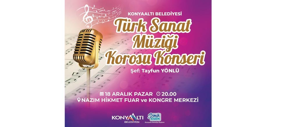 Kurulduğu günden bu yana Antalyalıların gönlünde taht kuran Konyaaltı Belediyesi Türk Sanat Müziği Korosu, 18 Aralık Pazar Günü müzikseverlerle buluşacak.