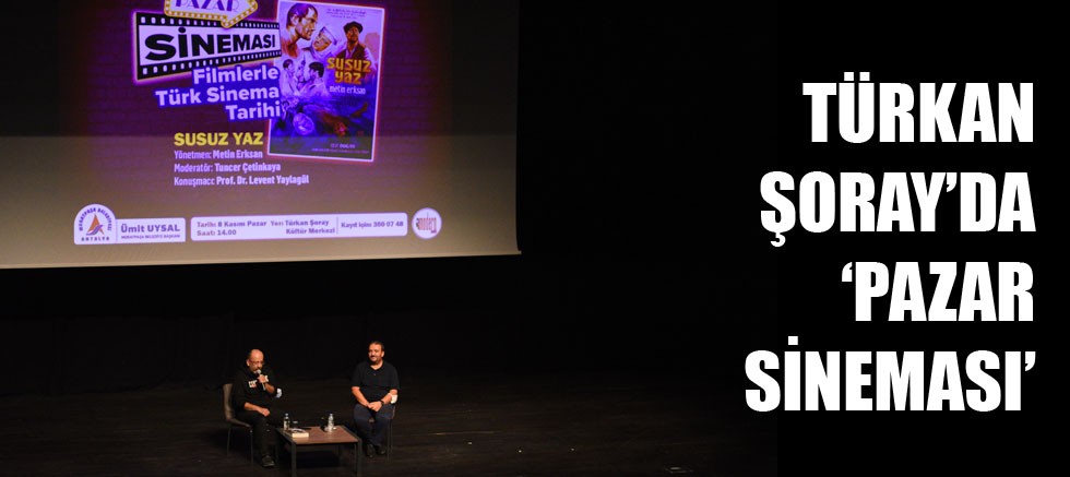 Pazar sineması’nın ilk programında, Metin Erksan’ın yönetmenliğini yaptığı ve Türk sinemasına Berlin Film Festivali’nde ilk büyük ödülü kazandıran 1963 yapımı ‘Susuz Yaz’ filmi gösterildi. Türkan Şoray Kültür Merkezi’ndeki gösterimin ardından Modern Zamanlar Sinema Derneği’nden Tuncer Çetinkaya moderatörlüğünde Akdeniz Üniversitesi İletişim Fakültesi’nden Prof. Dr. Levent Yaylagül’ün konuşmacı olarak katıldığı söyleşi gerçekleştirildi.