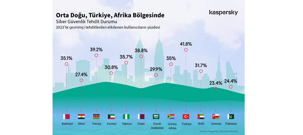 Kaspersky'nin analizine göre, web sayfalarındaki, e-postalardaki veya web hizmetlerindeki güvenlik açıklarından kaynaklanan çevrimiçi tehditler bölgede önemli ölçüde bir dalgalanmaya işaret ediyor. Bölgede çevrimiçi tehditlerden etkilenen en yüksek kullanıcı sayısı Türkiye'de görülürken (%41,8), onu Kenya (%39,2), Katar (38,8) ve Güney Afrika (%35) takip etti. Umman (%23,4) ve Mısır'da (%27,4) daha az kullanıcı saldırılardan etkilenirken, bunu Suudi Arabistan (%29,9) ve Kuveyt (%30,8) takip etti.
